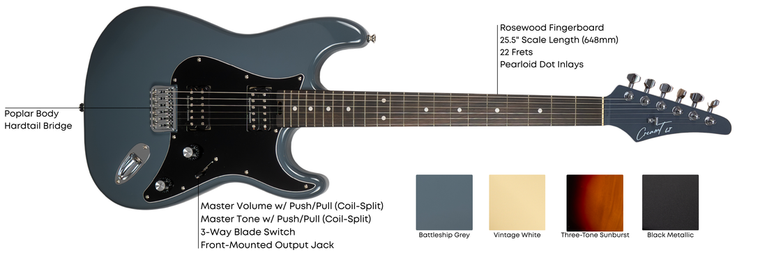 The new Cream T LT Series brings the signature ergonomics, tonal DNA, and pickup-swapping technology of the flagship Polaris and Crossfire models to more players worldwide. Built overseas with world-class craftsmanship, and quality-checked by the same UK team behind the British-made models, the LT Series delivers Cream T tone, feel, and confidence where it matters most – the real world.